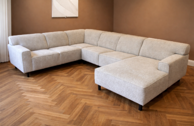 De prachtige bank Wish is er in vele kleuren. Het zitcomfort is zacht en heeft een koudschuim vulling. Kleur van de foto is beige. De bank is er ook spiegelbeeld.